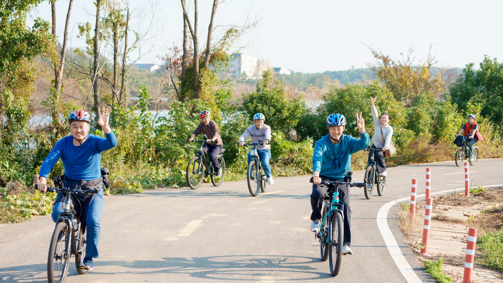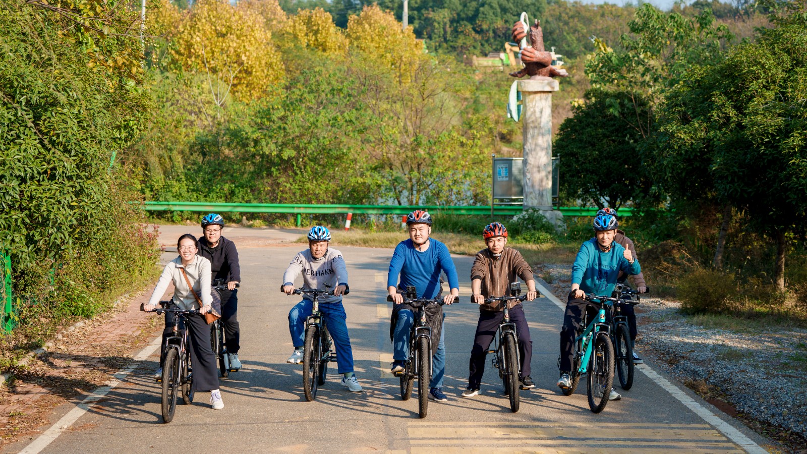騎行隊(duì)伍時(shí)而加速前進(jìn),時(shí)而駐足拍照,風(fēng)聲、笑聲、車輪聲交織成一首快樂(lè)協(xié)奏曲,工作中的緊繃感在這一刻隨風(fēng)而逝。
