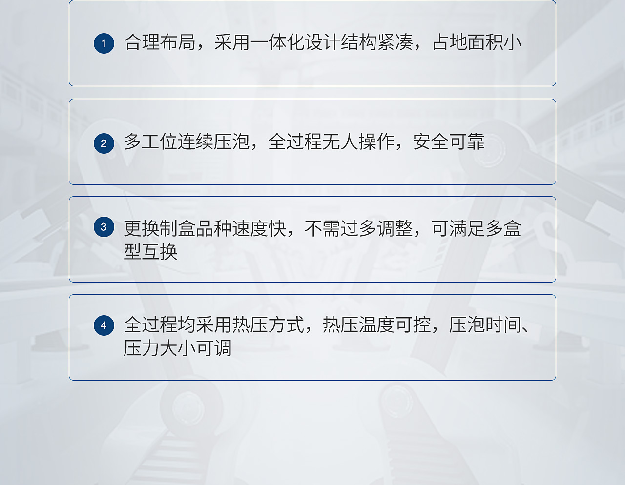 TG-PB35F全智能煙包壓泡機(jī)是我司針對(duì)高端精品煙盒包裝領(lǐng)域開發(fā)的通用壓泡機(jī)。