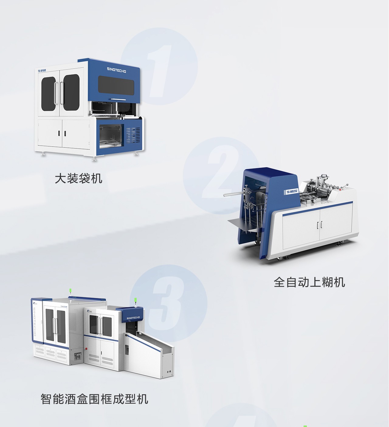 該整線由上糊過膠、視覺定位、皮殼四面包成型、圍框成型、圍框組裝等系列智能化設(shè)備構(gòu)成,可實(shí)現(xiàn)書型盒的自動化生產(chǎn)。柔性設(shè)計兼容多種盒型模塊化設(shè)計可自由拼線配置靈活,可滿足不同產(chǎn)品的生產(chǎn)需求。我司針對此線體已申請多項(xiàng)專利,擁有完整的專利保護(hù)鏈。